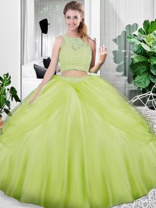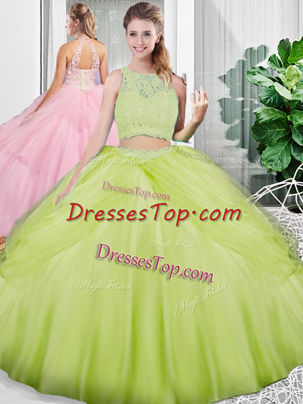 Floor Length Lace Up Quinceanera Gowns Yellow Green for Military Ball and Sweet 16 and Quinceanera with Lace and Ruching