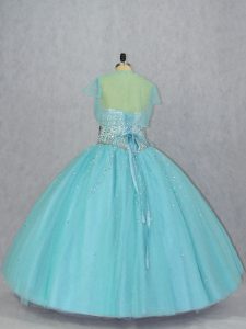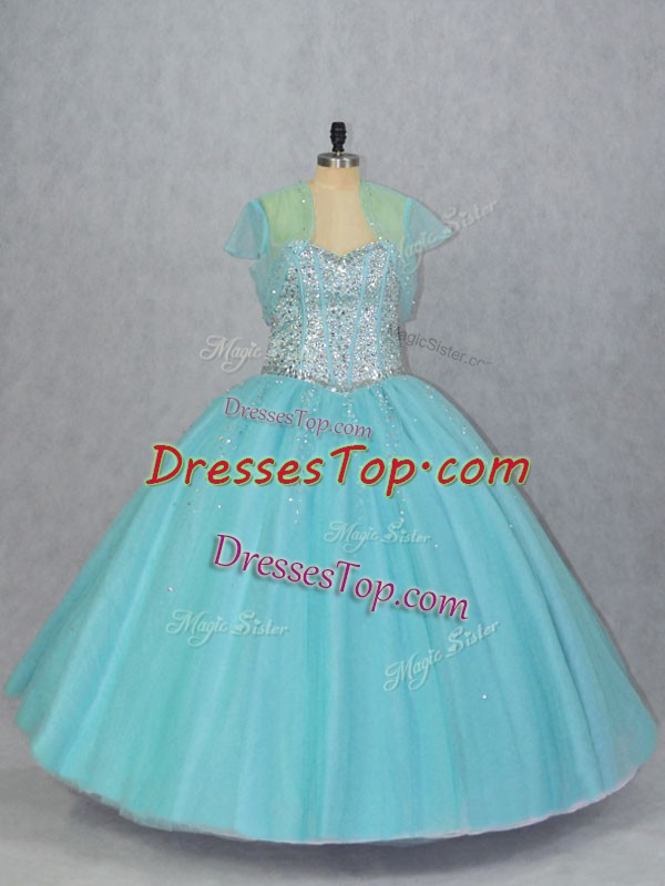 Floor Length Lace Up Sweet 16 Dresses Aqua Blue for Sweet 16 and Quinceanera with Beading
