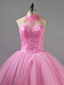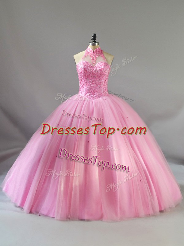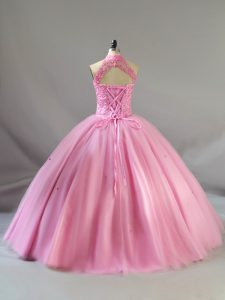 Floor Length Lace Up Sweet 16 Dresses Baby Pink for Sweet 16 and Quinceanera with Beading