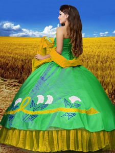 Floor Length Lace Up Sweet 16 Quinceanera Dress Multi-color for Military Ball and Sweet 16 and Quinceanera with Embroidery