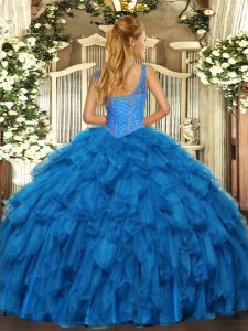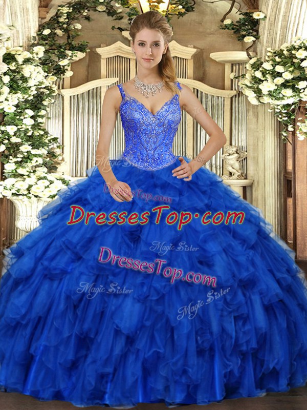 Floor Length Lace Up Sweet 16 Quinceanera Dress Royal Blue for Military Ball and Sweet 16 and Quinceanera with Beading and Ruffles