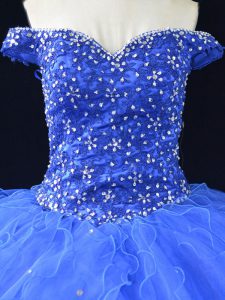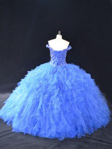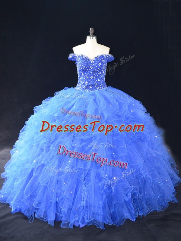 Floor Length Lace Up Vestidos de Quinceanera Blue for Sweet 16 and Quinceanera with Beading and Ruffles