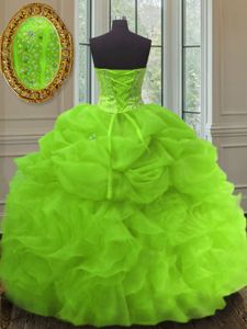 Sweetheart Sleeveless Organza Sweet 16 Dresses Beading and Ruffles and Pick Ups Lace Up