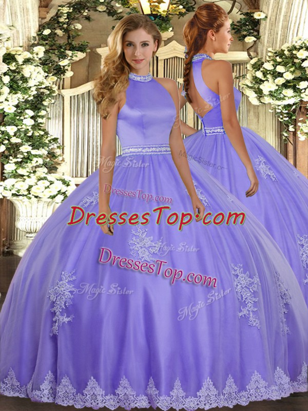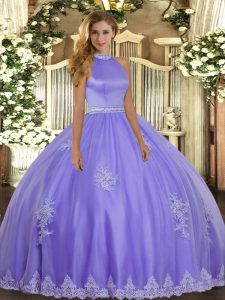 Floor Length Lavender 15th Birthday Dress Tulle Sleeveless Beading and Appliques