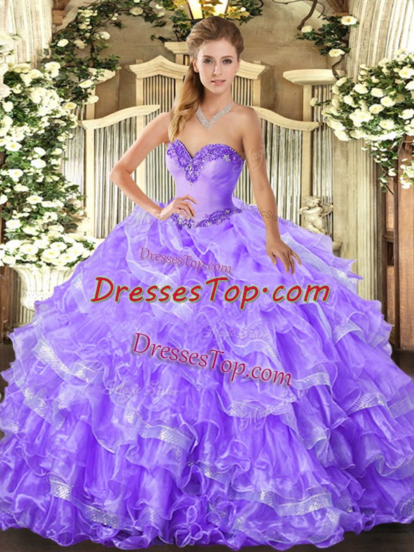Floor Length Lavender Quince Ball Gowns Sweetheart Sleeveless Lace Up