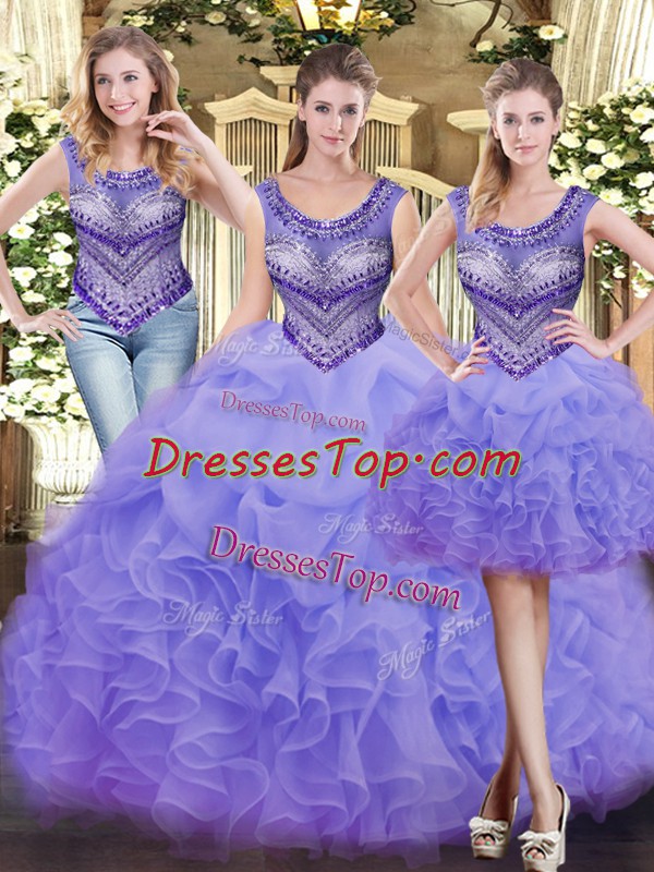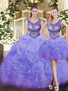 Floor Length Lavender Quinceanera Gown Tulle Sleeveless Beading and Ruffles