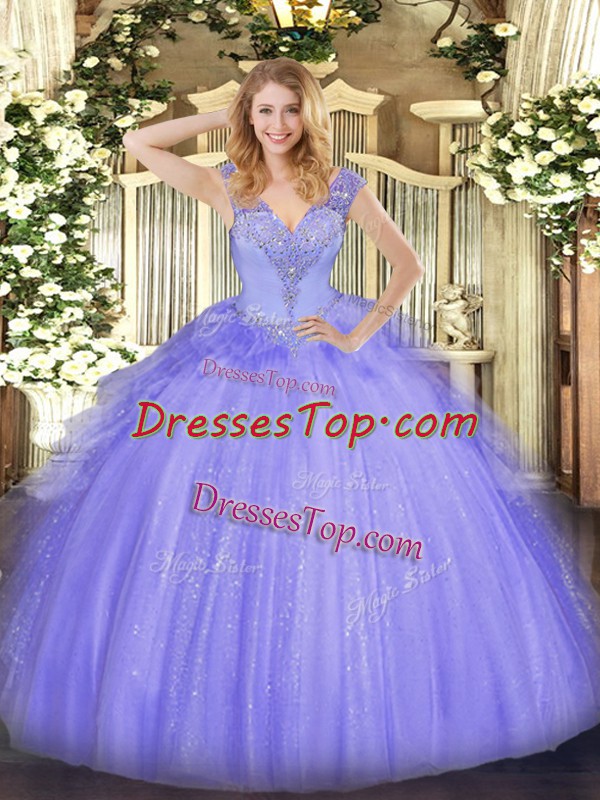 Floor Length Lavender Quinceanera Gown Tulle Sleeveless Beading