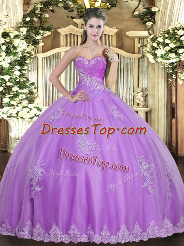 Floor Length Lilac Quinceanera Gowns Sweetheart Sleeveless Lace Up