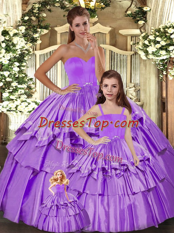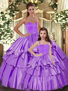 Floor Length Lilac Sweet 16 Dresses Taffeta Sleeveless Ruffled Layers