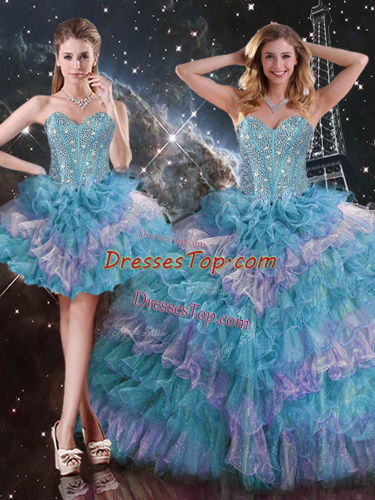 Floor Length Multi-color 15 Quinceanera Dress Sweetheart Sleeveless Lace Up