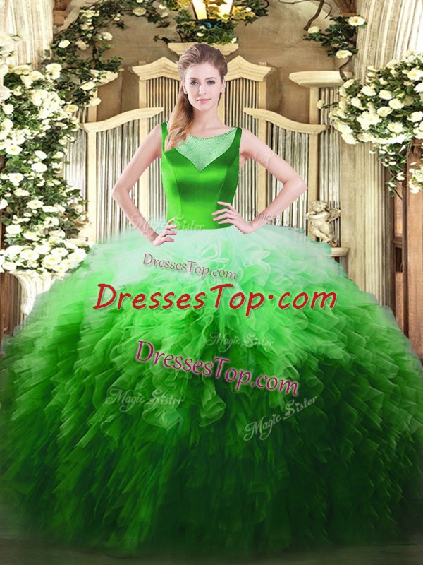 Floor Length Multi-color 15th Birthday Dress Tulle Sleeveless Beading and Ruffles
