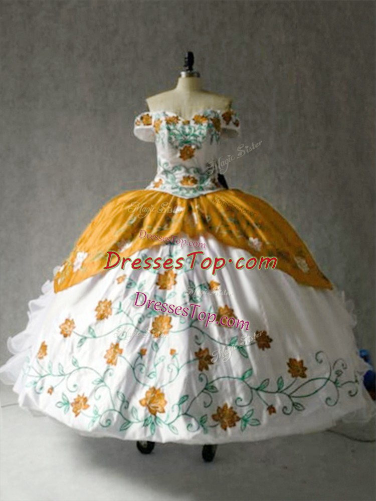 Floor Length Multi-color Ball Gown Prom Dress Off The Shoulder Cap Sleeves Lace Up