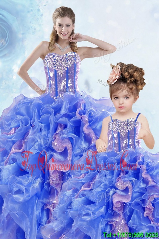 Floor Length Multi-color Quinceanera Dresses Organza Sleeveless Beading and Ruffles and Sequins