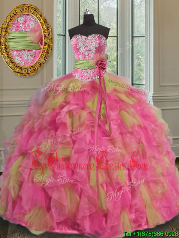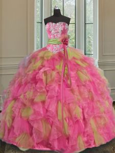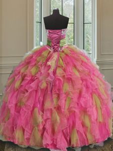 Floor Length Multi-color Quinceanera Gown Organza Sleeveless Beading and Ruffles and Sequins