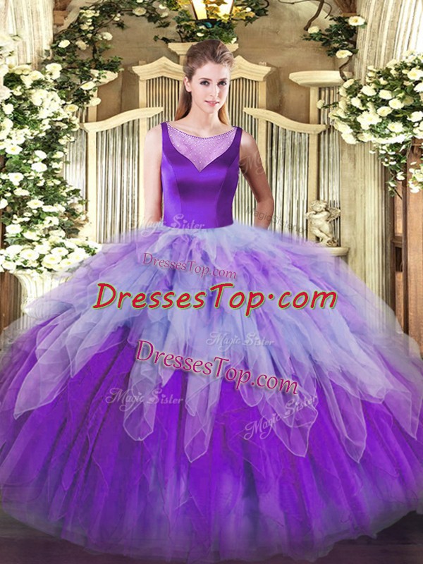 Floor Length Multi-color Vestidos de Quinceanera Scoop Sleeveless Side Zipper