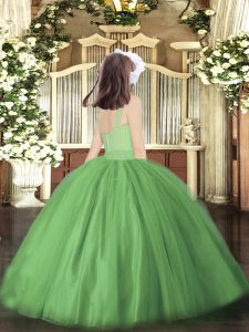 Floor Length Olive Green Pageant Dress Toddler Tulle Sleeveless Beading