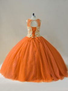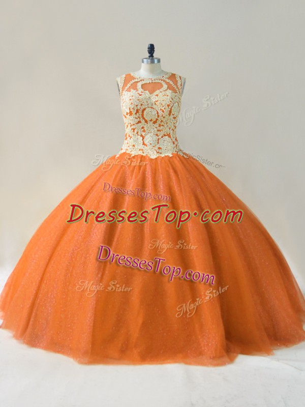 Floor Length Orange 15 Quinceanera Dress Scoop Sleeveless Lace Up