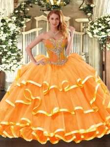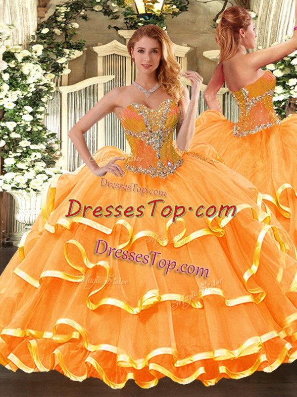 Floor Length Orange 15 Quinceanera Dress Sweetheart Sleeveless Lace Up