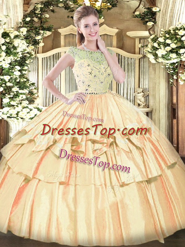 Floor Length Orange Ball Gown Prom Dress Bateau Sleeveless Zipper