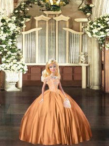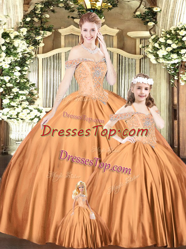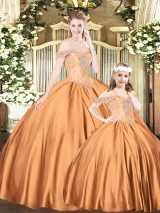 Floor Length Orange Red Quinceanera Gown Tulle Sleeveless Beading