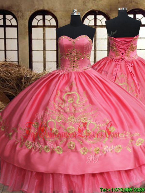 Floor Length Pink Ball Gown Prom Dress Sweetheart Sleeveless Lace Up