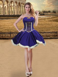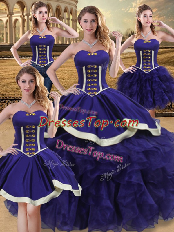 Floor Length Purple Ball Gown Prom Dress Satin Sleeveless Beading and Ruffles