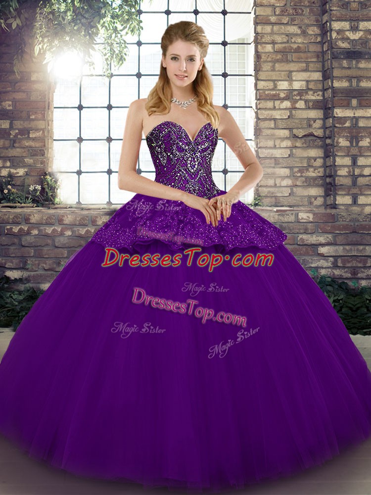 Floor Length Purple Ball Gown Prom Dress Sweetheart Sleeveless Lace Up