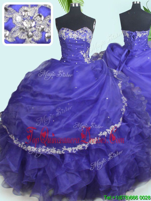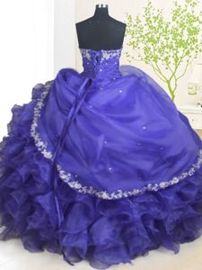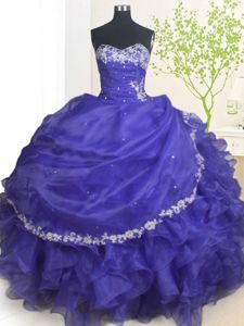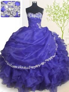 Floor Length Purple Quinceanera Dresses Organza Sleeveless Beading and Appliques