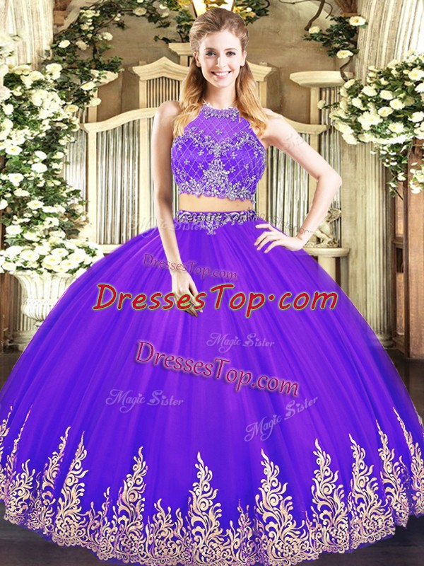 Floor Length Purple Sweet 16 Dress Scoop Sleeveless Zipper