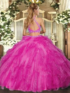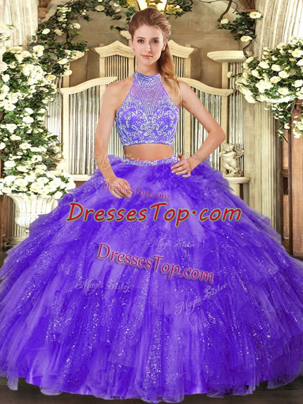 Floor Length Purple Sweet 16 Dress Tulle Sleeveless Beading and Ruffles