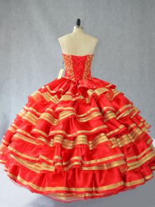 Floor Length Red 15 Quinceanera Dress Sweetheart Sleeveless Lace Up