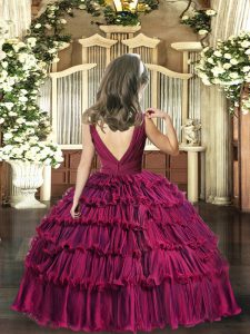 Floor Length Red Pageant Dress Wholesale Sleeveless Beading and Ruffled Layers
