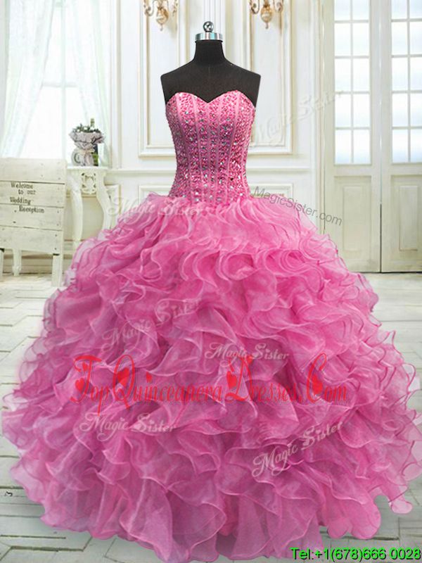 Floor Length Rose Pink Quinceanera Dress Sweetheart Sleeveless Lace Up
