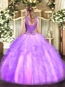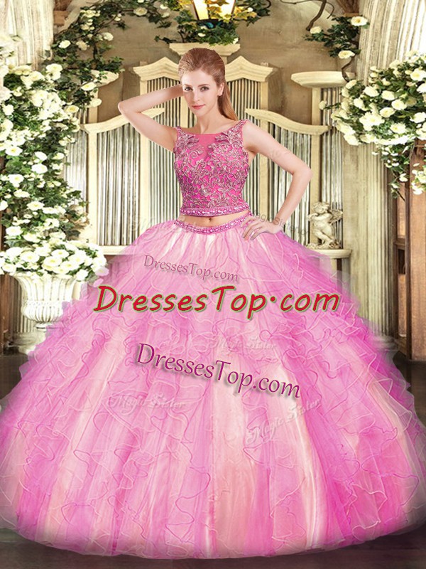 Floor Length Rose Pink Quinceanera Gown Scoop Sleeveless Lace Up