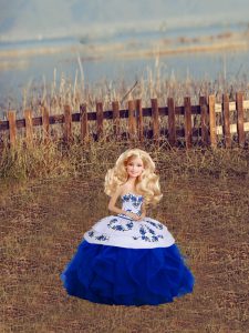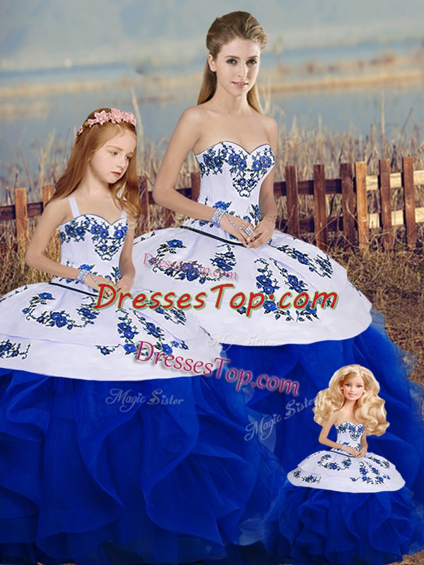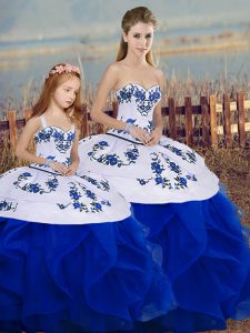 Floor Length Royal Blue Sweet 16 Quinceanera Dress Tulle Sleeveless Embroidery and Ruffles and Bowknot