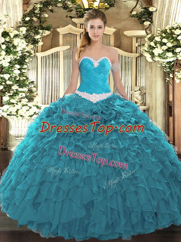 Floor Length Teal Sweet 16 Quinceanera Dress Sweetheart Sleeveless Lace Up