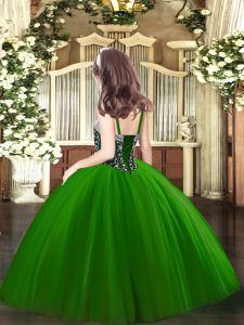 Floor Length Turquoise Glitz Pageant Dress Tulle Sleeveless Beading