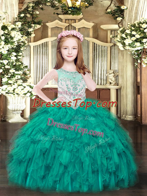 Floor Length Turquoise Pageant Dress for Teens Scoop Sleeveless Zipper