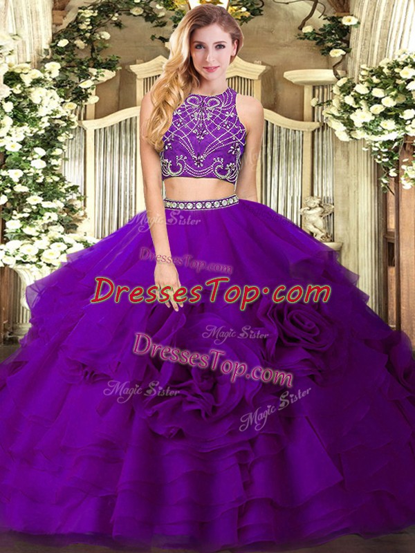Floor Length Two Pieces Sleeveless Eggplant Purple Sweet 16 Quinceanera Dress Zipper