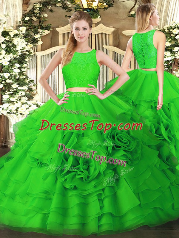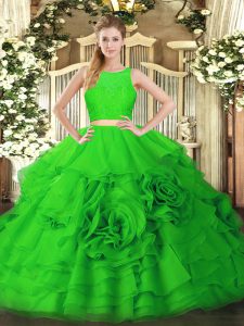 Floor Length Two Pieces Sleeveless Green Quince Ball Gowns Zipper