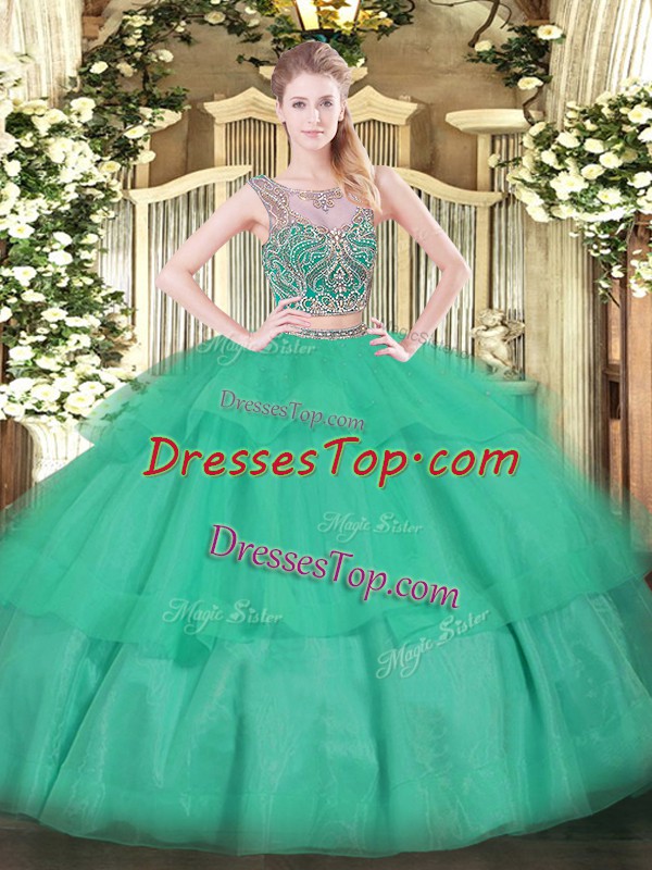 Floor Length Two Pieces Sleeveless Turquoise Quinceanera Dress Lace Up