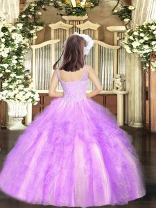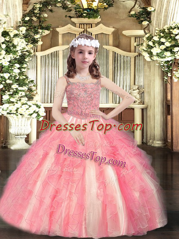 Floor Length Watermelon Red Pageant Dress for Girls Straps Sleeveless Lace Up