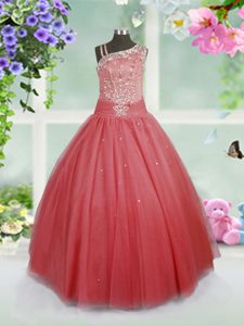 Floor Length Watermelon Red Pageant Dress for Womens Asymmetric Sleeveless Side Zipper