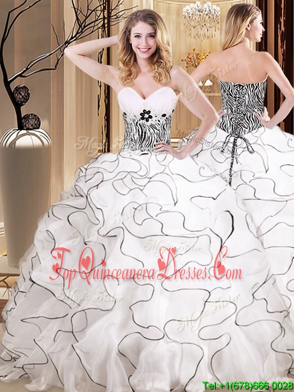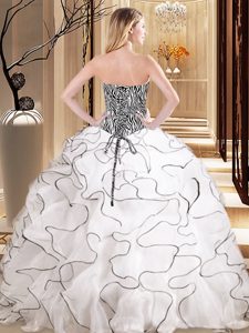 Floor Length White Sweet 16 Dresses Organza Sleeveless Ruffles