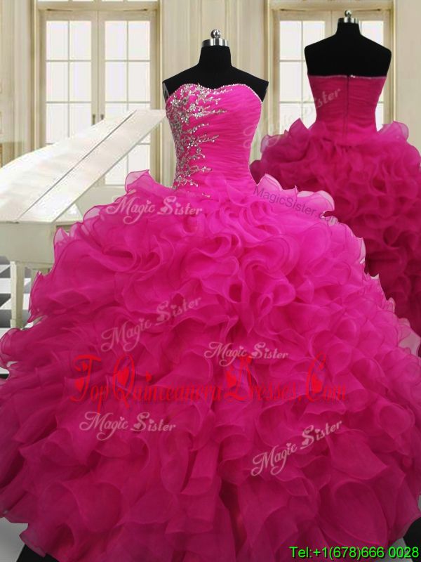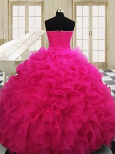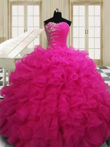 Floor Length Zipper 15th Birthday Dress Hot Pink and In for Military Ball and Sweet 16 and Quinceanera with Beading