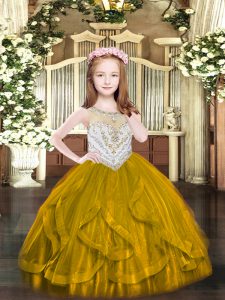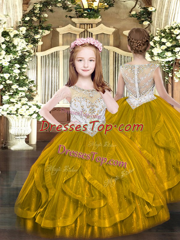Floor Length Zipper Pageant Gowns For Girls Brown for Party and Quinceanera with Beading and Ruffles