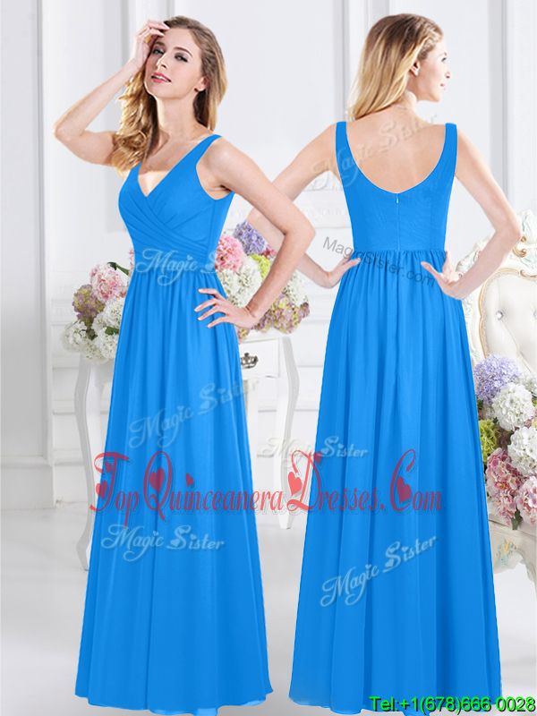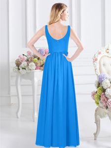 Floor Length Zipper Quinceanera Court Dresses Baby Blue and In for Prom and Party and Wedding Party with Ruching
