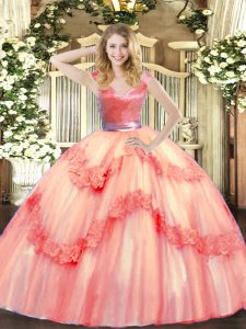 Floor Length Zipper Sweet 16 Dresses Watermelon Red for Military Ball and Sweet 16 with Beading and Appliques