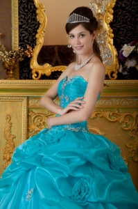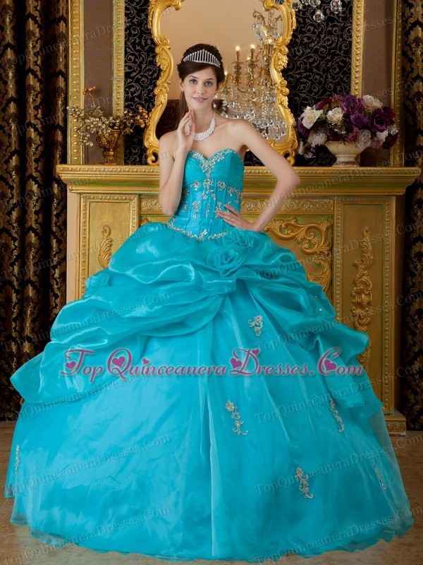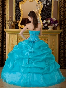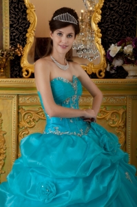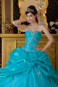 Flowers Teal Pick-ups Quinceanera Dress Appliques Organza