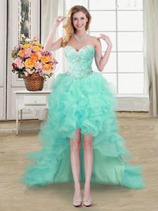 Four Piece Apple Green Sweetheart Neckline Beading and Ruffles and Pick Ups Quinceanera Dresses Sleeveless Lace Up